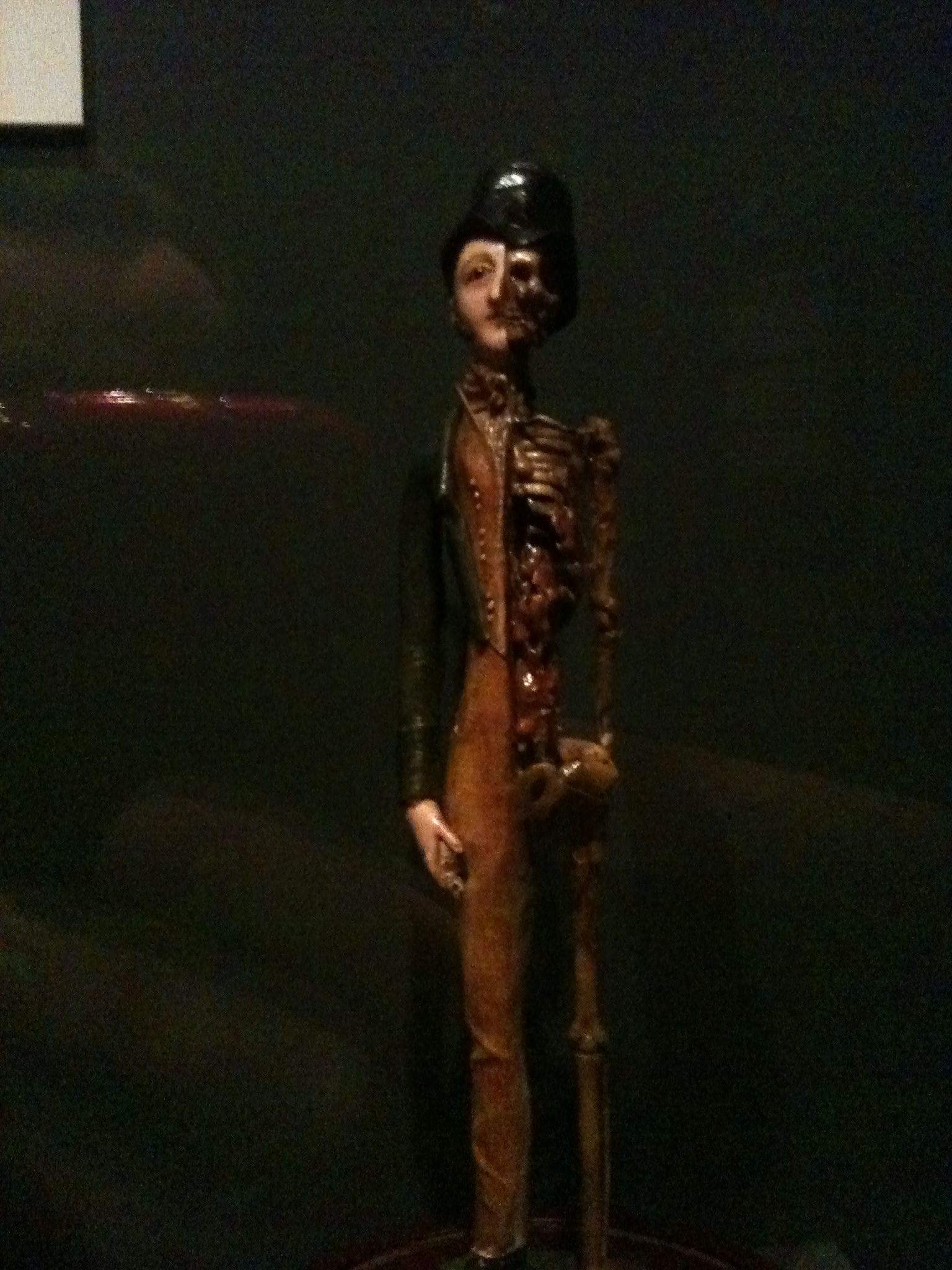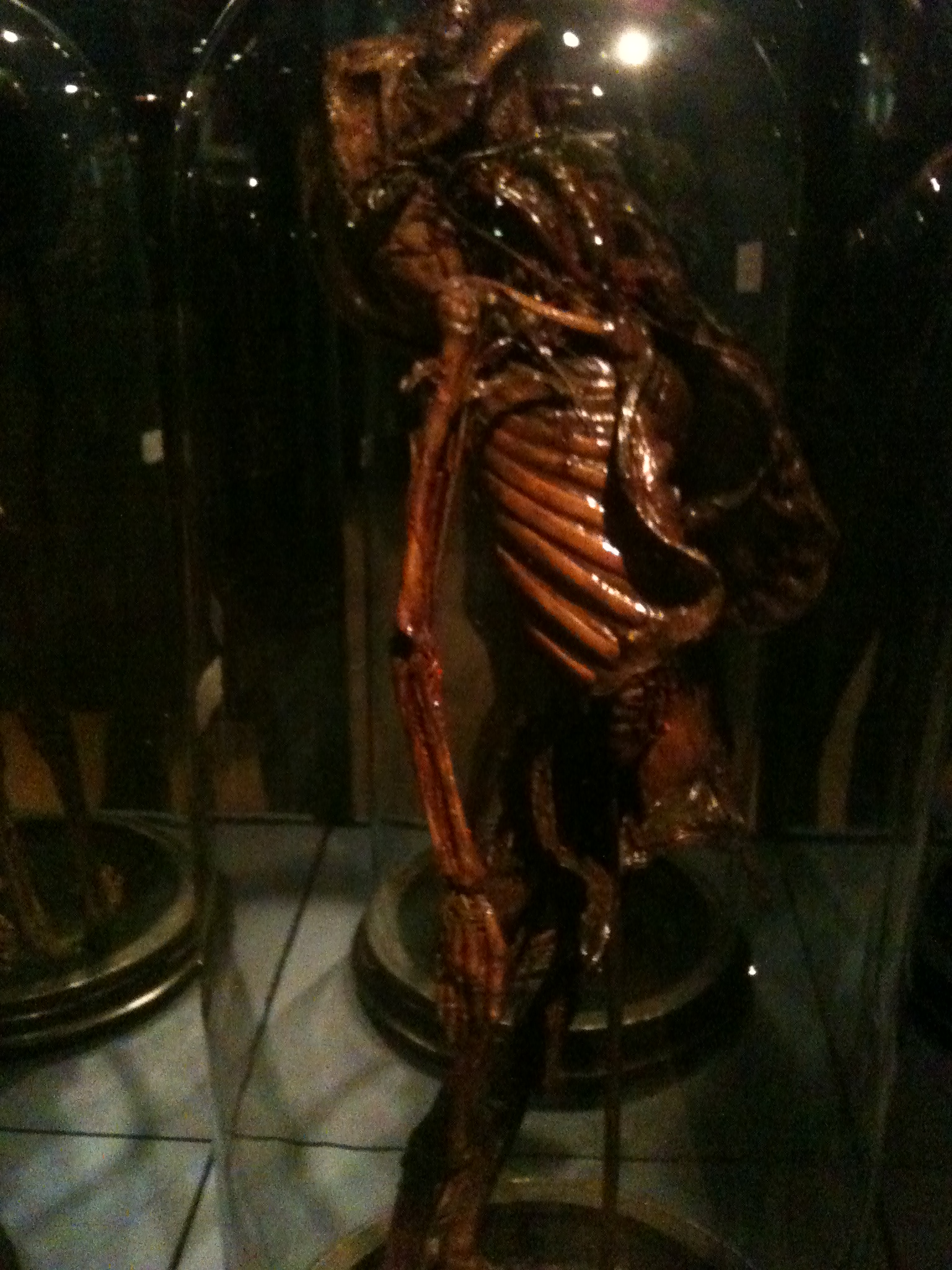 The most striking ‘real’ skeleton is hidden away in the corner, the remains of a small boy preserved in shellac and looking for all the world like something from Alien. Even this inescapably gruesome spectacle is a far cry from the horrors of previous centuries, when museums had a much less cautious approach to human remains, perhaps due to centuries of seeing saints relics – bits of skin, teeth and bones – on display in holy places. We at least, though, have come a long way from the indignities suffered post-life by Angelo Soliman, an African who moved in high circles in 18th-century Europe but, upon death, was nonetheless stuffed, dressed in ‘African’ clothes and put on display in a cabinet of curiosities among some animals and assorted wildlife. This grotesque display was thankfully destroyed by fire in 1848.