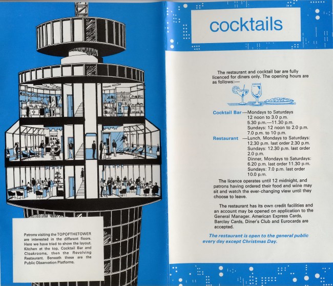 And in 1966, its revolving restaurant featured in one of Look At Life‘s fabulous films. Here are two pages from the menu, taken from the excellent Butlins Memories website.