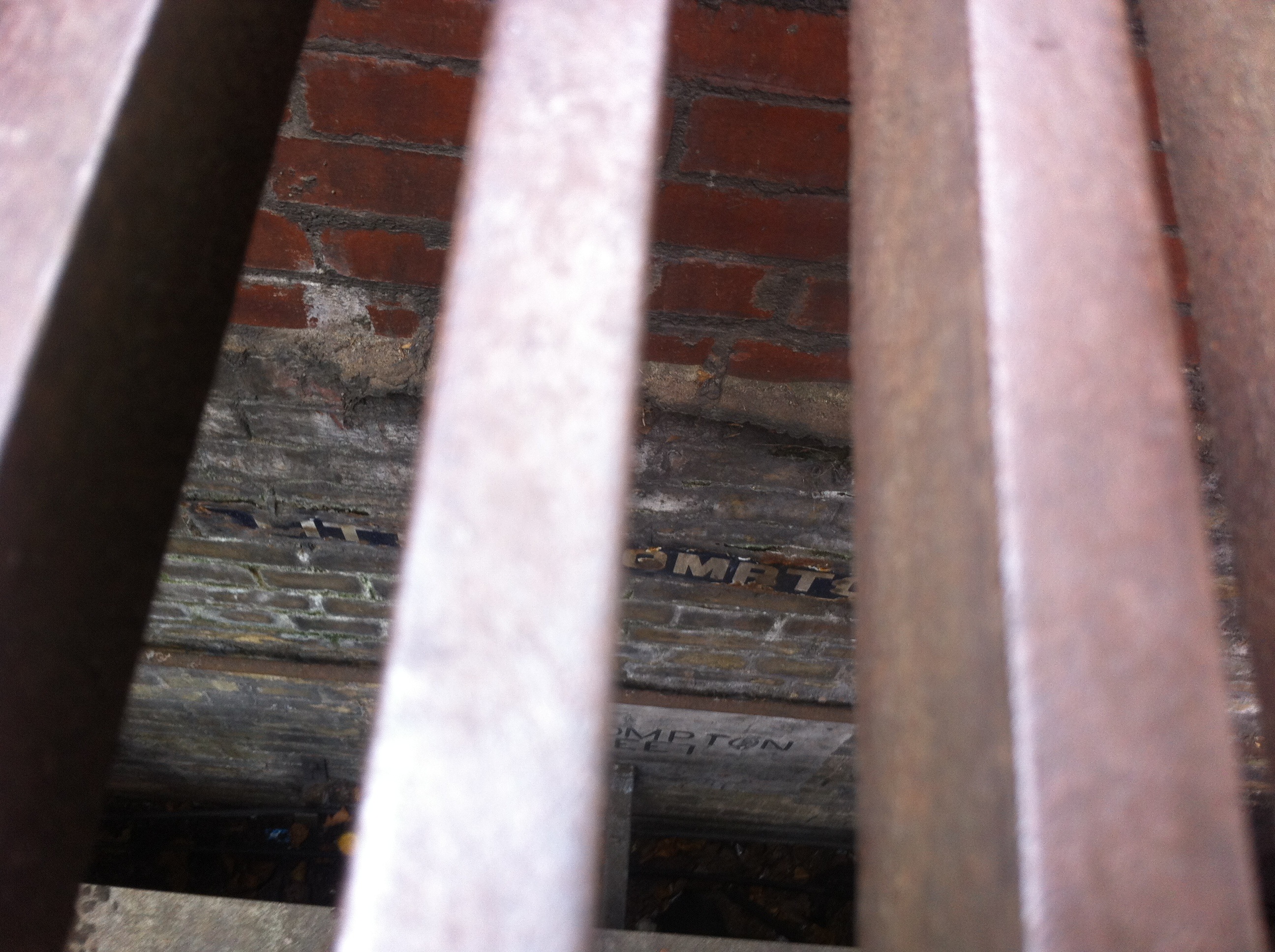 As I crossed Charing Cross Road from Soho and stood on an island in the middle of the road waiting for a No 24 bus to pass, I happened to look into the grille beneath my feet. I have instinctive curiosity when it comes to London holes but this is the first time I’ve really seen anything of interest, as, to my surprise, I could make out what appeared to be a subterranean street sign set into the wall a few feet below the ground.