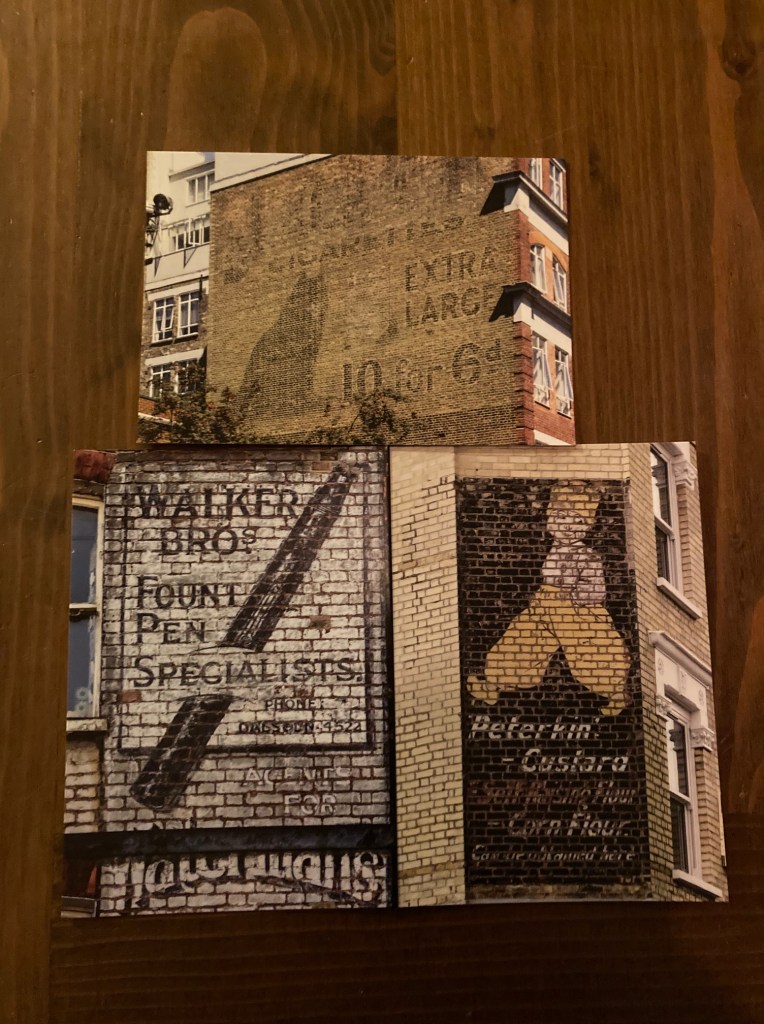 So while most books on this subject would have gone photo heavy, Sam has chosen a more scholarly approach – although Roy’s photos are still fabulous. Cleverly, the hundreds of ghost signs are arranged by subject matter – food, building, clothes etc- rather than geographically, and considerable research has gone into the practicalities of how signs were made, how sites were located, what was being advertised and why some have survived. As such, it offers a fascinating insight into the advertising of the era, and a reminder that the Edwardian city must have been a spectacularly colourful time, with brightly painted adverts adorning so many walls.
