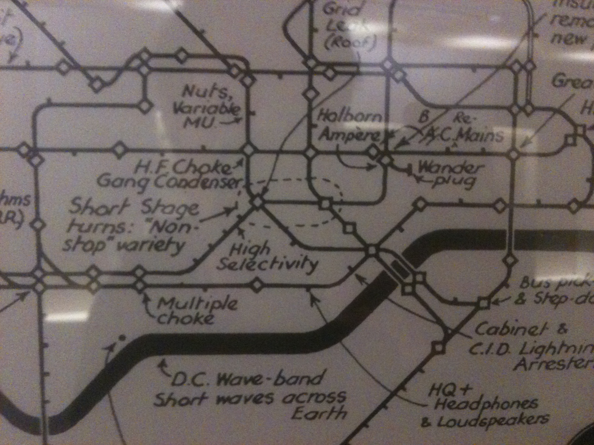 The success of the Metropolitan led to the building of the District Line along the Victoria Embankment, and then the creation of a Circle Line to link the two. Unfortunately, the two east-west lines were run by rivals, James Forbes and Edward Watkin, whose perpetual bickering meant the Circle took twenty years to complete. When it was finished in 1884, Watkins’ Met operated trains that ran clockwise, while Forbes’ District controlled those in the other direction; such was the antagonism between the two, the companies refused to sell tickets for their rival line, meaning a passenger might end up paying for 20 stops rather than seven. When the Circle was finally electrified in 1905 the companies used different systems which proved incompatible, resulting in a further three-month delay. Because the Underground was built haphazardly by private investment and with no central planning, there were many such inconsistencies. Some destinations had more than one station, built by competing interests, which explains why there is such a poor interchange at Hammersmith between the Hammersmith & City and District Lines, and why Oxford Circus has two different surface stations on either side of Argyll Street. This is also why there are so many ghost stations on the network – about 40 – built without adequate knowledge of whether they were actually needed.